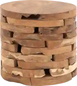 The solid teak construction and pedestal base provide a sturdy, weighted foundation. Compared to some lightweight, thin-legged side tables, this cylinder-inspired design offers a lower center of gravity and increased stability, making it a more secure option in homes with active pets or children where tipping is a concern.