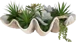 Nalula is a seaside blend that transports you right to the beach. A mix of succulents, natural moss and natural cholla wood are nestled into a neutral finished clam shell bowl.
