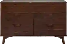 Add storage space into your home for your clothing and extra throws or pillows with this Namora 6 drawer dresser. In a stylish, Mid-century modern design featuring angled legs and cutout handles of solid pine wood in a stained finish. The intriguing design integrates a transitional aesthetic to complement your home dcor. With six storage deep drawers to keep your clothing organized in your bedroom or for blankets and extra bedding in your guest room. Customer assembly is required.