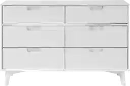 This dresser features a transitional aesthetic that bridges the gap between retro and contemporary design. The Mid-century modern silhouette and solid pine accents allow it to fit seamlessly into a vintage-inspired room, while the crisp white finish and minimalist cutout handles make it equally at home in a modern or Scandinavian-style space.