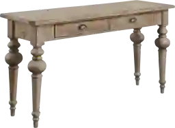 With a rustically elegant design, the Naniloa taupe sofa table features hand distressed woods capturing French country casual. The collection is beautifully finished with wrought iron inspired hardware. Let the Naniloa set the tone of comfortable sophistication in your home. Customer assembly is required.
