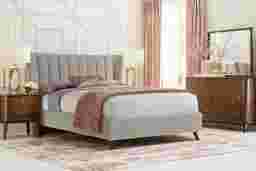 Fashion your bedroom with the chic style of the extravagant Nanton Park bed. Fully upholstered in plush gray velvet, this bed offers a contemporary look with a headboard that features a gorgeous wingback style complete with vertically tufted channels. Mattress and foundation (if required) sold separately.