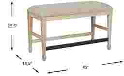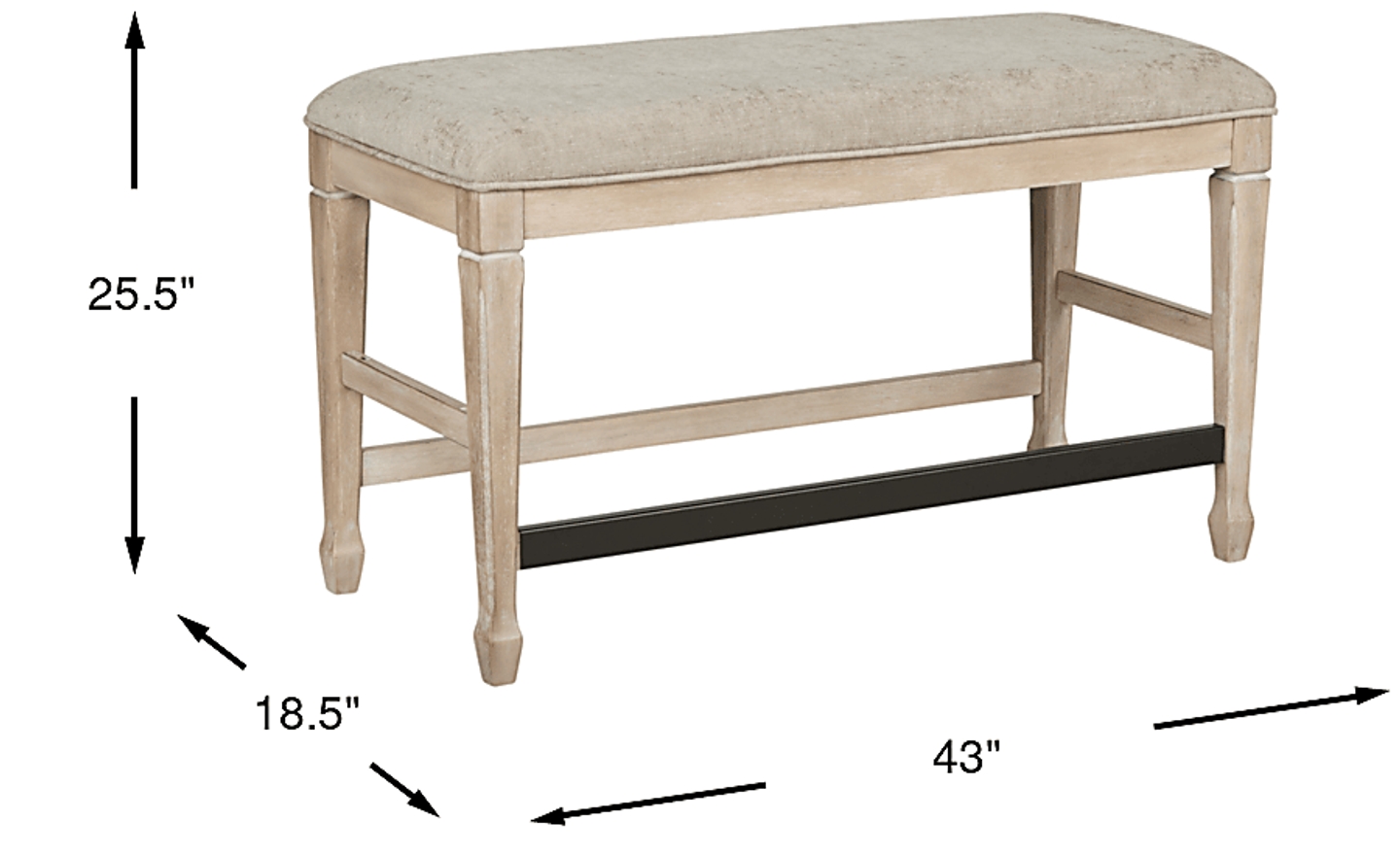 Cozy comfort with coastal chic style, the Nantucket Breeze counter height dining bench creates a community feel at each and every meal. Crafted of hardwood solids and mindi veneers in a two-tone brushed bisque and caramel finish, this stylish bench features an upholstered seat cushion for added comfort. A scuff protector shields the footrest to prevent unwanted marks.