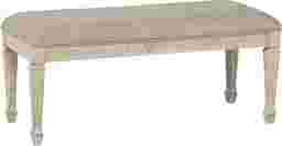 Cozy comfort with coastal chic style, the Nantucket Breeze dining bench creates a community feel at each and every meal. Crafted of hardwood solids and mindi veneers in a two-tone brushed bisque and caramel finish, this stylish bench features an upholstered seat cushion for added comfort.