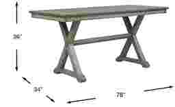 Charming and coastal inspired, the Nantucket Breeze counter height dining table's trestle base and plank table top creates a farmhouse style coziness that adds instant warmth to your dining space. Crafted of hardwood solids and mindi veneers in a brushed gray finish, this spacious 78 x 34 inch table invites everyone to pull up a seat and stay awhile.