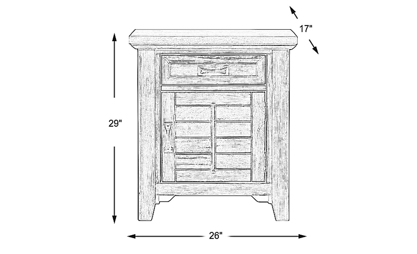 Offering a fresh take on a classic bedroom piece the Nantucket Breeze nightstand is the epitome of coastal chic. A felt lined top drawer, made with English dovetail joints for strength and stability, keeps bedtime essentials close at hand. Below is a shuttered door that fronts a storage area. Brushed gold hardware complements the brushed gray finish.