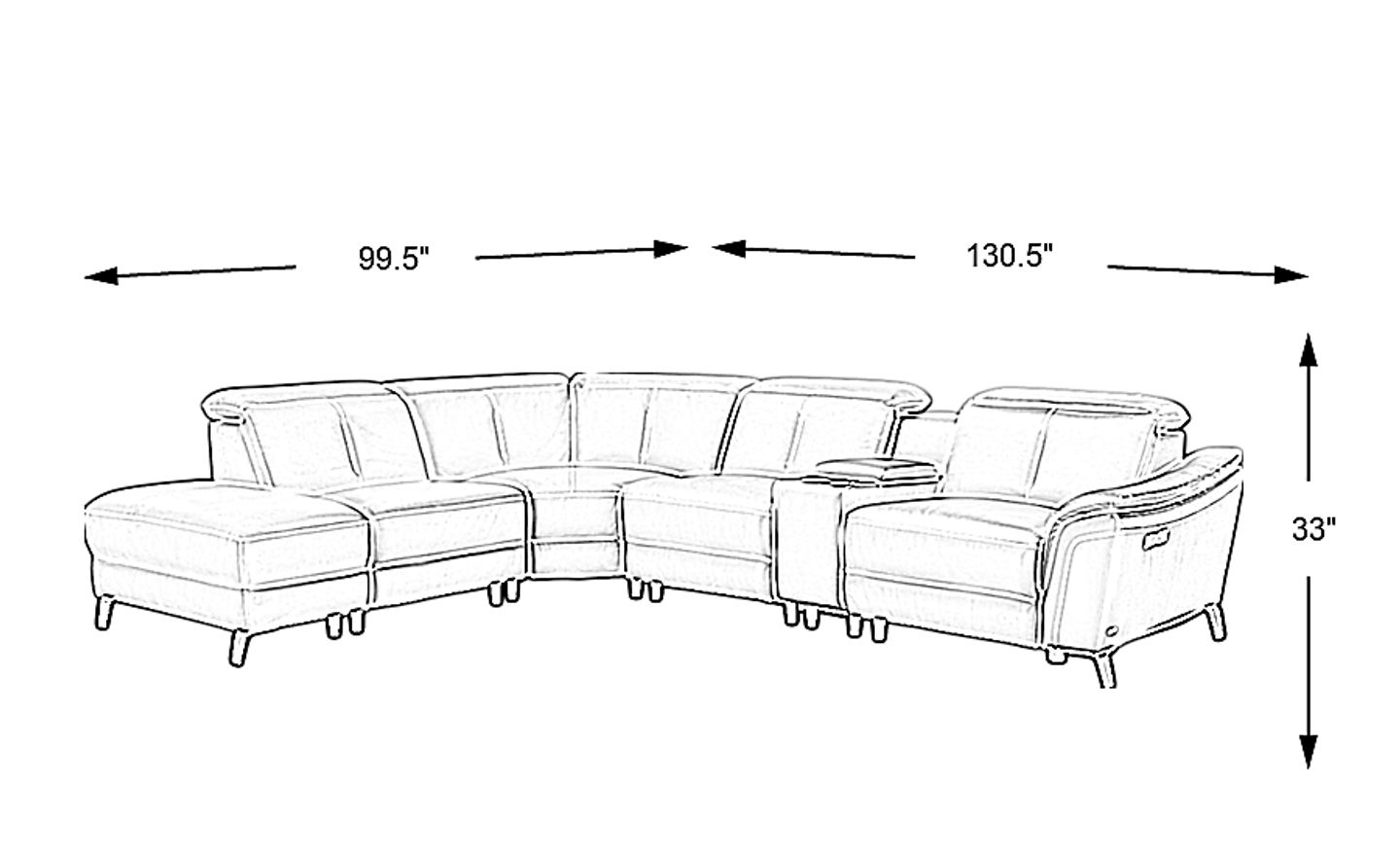 130.5"w"w x 99.5"d"d x 33"h"h