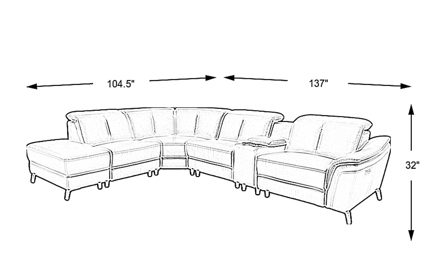 Redefine your living space with the modern lines and sleek silhouette of the Naples sectional from the Sofia Vergara collection. Upholstered in soft and luxurious top grain leather where the body touches in a light gray hue, this piece comes equipped with a dual power recliner whose adjustable head and footrest can be raised and lowered with the push of a button, keeping you cradled in comfort. It also features a USB charging port on one side and a console with lift-top storage and two cupholders to keep your must-haves organized. Top grain leather where the body touches and vinyl sides and backs.