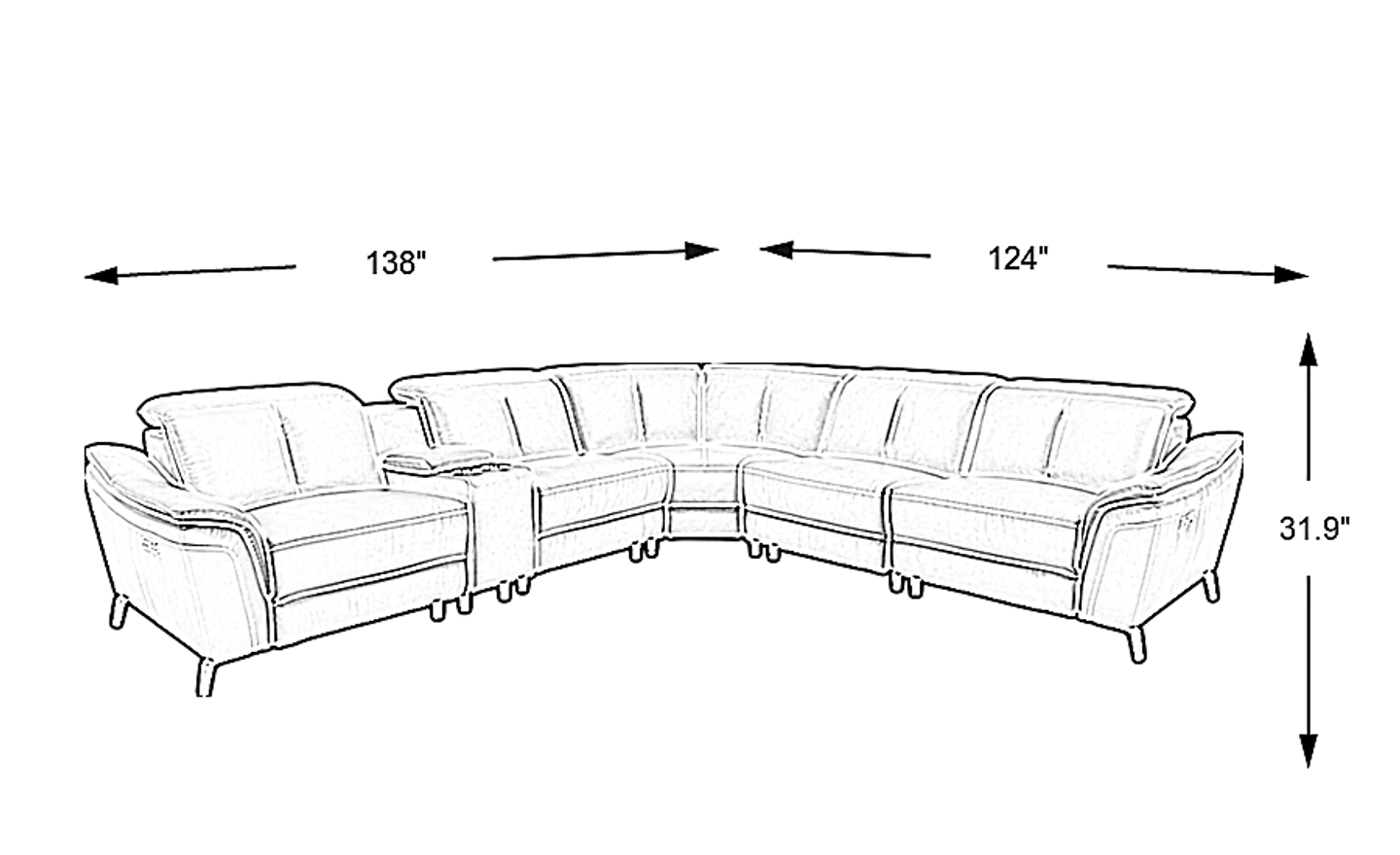 Redefine your living space with the modern lines and sleek silhouette of the Naples sectional from the Sofia Vergara collection. Upholstered in soft and luxurious top grain leather where the body touches in a light gray hue, this piece comes equipped with three dual power recliners whose adjustable head and footrests can be raised and lowered with the push of a button, keeping you cradled in comfort. It also features a USB charging port on one side and a console with lift-top storage and two cupholders to keep your must-haves organized. Top grain leather where the body touches and vinyl sides and backs.