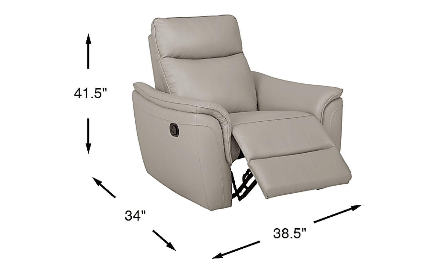 Combining luxe comfort and sophisticated lines, the Naples recliner is a welcoming place to unwind in style. Upholstered in soft light gray top grain leather where the body touches, this piece features a manual reclining function with a padded chaise-style footrest ideal for relaxing with ease. Its amply padded seat and arms keep you surrounded in softness from every angle. Swivel and rocker features promise versatile movement. Top grain leather where the body touches and vinyl sides and backs.
