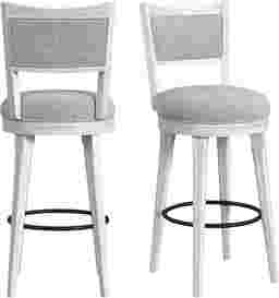 Accent your dining area with the practical style of the Nare swivel bar stool. This standard bar height chair is built with the quintessential swivel function designed to ease movement. A comfortably upholstered seat and back rest are fitted with supportive foam cushioning for comfort, while a round, black stretcher reinforces the chair's structure and reduces unwanted racking. Customer assembly is required.