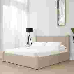With dimensions of 83"W x 87"D, this king bed is a significant centerpiece. For a comfortable layout that allows for nightstands and walking paths, we recommend a bedroom that is at least 12' x 12'. In larger suburban master suites, its plush profile creates a cozy focal point, while in more compact urban spaces, its clean lines and oatmeal hue help keep the room feeling open and airy.