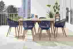 Nassau 7 Pc Rectangle Outdoor Dining Set with Blue Chairs