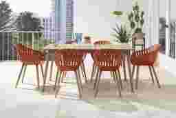 Nassau 7 Pc Rectangle Outdoor Dining Set with Orange Chairs