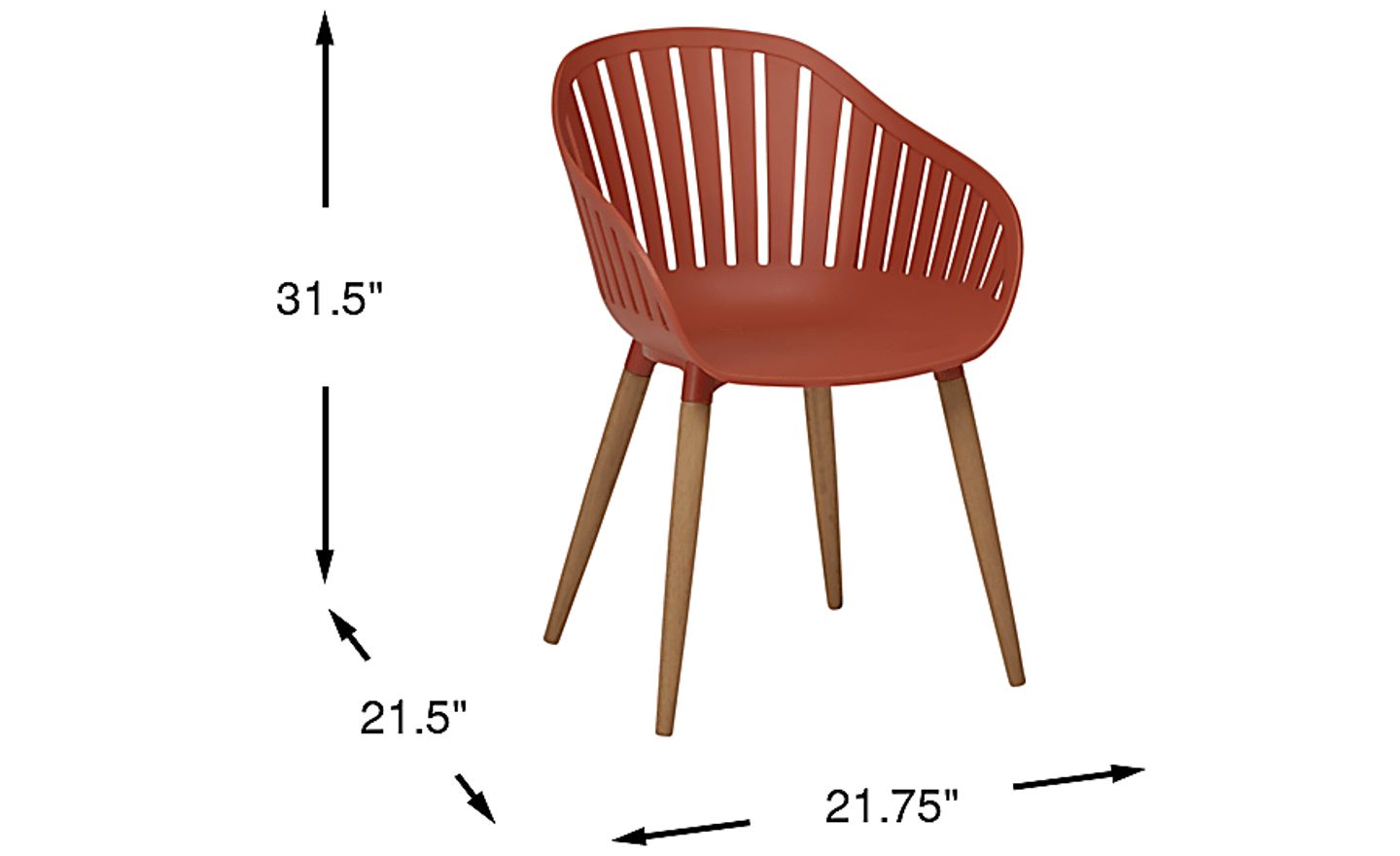 An open slat design and juicy orange color make the Nassau chair a welcome addition to almost any outdoor area. The chair boasts a shaped resin seat supported by sturdy, angled eucalyptus wood legs.