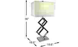 Boasting modern style and bold geometric shapes, the Natalya lamp is perfect for those who appreciate contemporary home decor. The lamp's chrome body is topped by a white rectangular shaped shade. It has a three-way switch and can accommodate a maximum 100 watt bulb (not included).