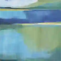 The cool blue and green palette of this landscape makes it a versatile anchor for modern and transitional spaces. Based on professional styling principles, these colors pair exceptionally well with neutral upholstery in gray, cream, or beige. For a cohesive look, try pulling the "Blue" and "Green" primary colors from the art into the room through smaller accents like throw pillows or decorative glass vases.