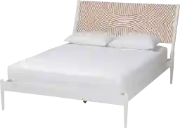 Enduring elegance uplifts the poise of your space with the stunning Naugle white queen bed. This coastal piece is crafted from sturdy wood. Its angled headboard presents a remarkable carved design rich with geometric allure while providing superb comfort when sitting up in bed. The Naugle utilizes wood slats for mattress support, eliminating the need for a box spring. Tapered legs complete the look, making the Naugle a fantastic bedroom centerpiece. Customer assembly is required.