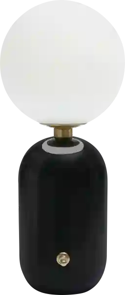Introducing the Navarre Lane lamp, a modern essential in sleek black. With a glossy lacquer finish on metal, a frosted glass globe emitting a warm light, and a felted base ensuring furniture-friendly placement, this lamp seamlessly combines style and function. Its versatile design makes it a perfect addition to any aesthetic. Partial assembly may be required.