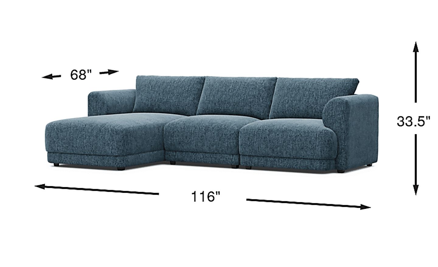 With a total width of 116 inches, this sectional offers generous seating while remaining well-scaled for many medium-sized living areas. Because the unit is modular, the individual components are much easier to maneuver through narrow hallways, elevators, and standard apartment doorways during delivery than a traditional, fixed-frame sofa. Furthermore, the all-sides upholstery ensures each module looks finished from every angle, providing the flexibility to place the furniture in the center of an open-concept space or against a wall.