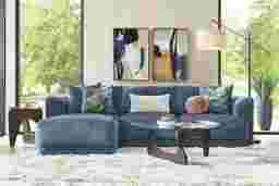 The story of your space is waiting to unfold, its memories, laughs, movie nights and great times, all with the Drew & Jonathan ModularFour living room as the setting you configure to bring it to life. This customizable contemporary seating solution features individual pieces that can be reconfigured endlessly to the shape you need. All-sides upholstery in navy blue chenille offers modern style and comfort at every angle while large, rounded wedge arms invite long sessions of indulgent relaxation. Effortlessly tailor your seating arrangement for everything from game days to sleepovers to everyday relaxation with easy-to-use connectors for rock solid stability. Includes left arm chaise, armless chair, and right arm chair. Visit a showroom to learn more about individual components and to work with a sales specialist to customize your own configuration today. Upholstery: 100% Polyester.