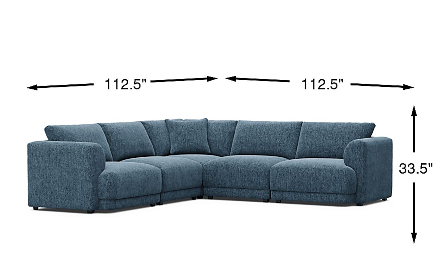 This model is an ideal solution for urban living and tight layouts. Unlike traditional large-scale sofas, this is a modular system delivered as five individual pieces: a left-arm chair, two armless chairs, a wedge, and a right-arm chair. These smaller components are much easier to maneuver through narrow doorways, stairwells, and hallways. With a total footprint of 112.5"w x 112.5"d, its "condo-friendly" design provides generous seating without the delivery headaches of a standard oversized sectional.