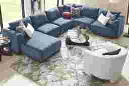 The story of your space is waiting to unfold, its memories, laughs, movie nights and great times, all with the Drew & Jonathan ModularFour living room as the setting you configure to bring it to life. This customizable contemporary seating solution features individual pieces that can be reconfigured endlessly to the shape you need. All-sides upholstery in navy blue chenille offers modern style and comfort at every angle while large, rounded wedge arms invite long sessions of indulgent relaxation. Effortlessly tailor your seating arrangement for everything from game days to sleepovers to everyday relaxation with easy-to-use connectors for rock solid stability. Includes right arm chaise, three armless chairs, wedge and left arm chair. Visit a showroom to learn more about individual components and to work with a sales specialist to customize your own configuration today. Upholstery: 100% Polyester.