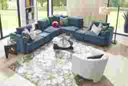 The story of your space is waiting to unfold, its memories, laughs, movie nights and great times, all with the Drew & Jonathan ModularFour living room as the setting you configure to bring it to life. This customizable contemporary seating solution features individual pieces that can be reconfigured endlessly to the shape you need. All-sides upholstery in navy blue chenille offers modern style and comfort at every angle while large, rounded wedge arms invite long sessions of indulgent relaxation. Effortlessly tailor your seating arrangement for everything from game days to sleepovers to everyday relaxation with easy-to-use connectors for rock solid stability. The included media consoles feature integrated bluetooth-enabled speakers, USB-A and USB-C charging, and can connect with up to 5 additional media consoles for an incredible surround-sound experience. Includes left arm chair, two media consoles, two armless chairs, wedge and right arm chair. Visit a showroom to learn more about individual components and to work with a sales specialist to customize your own configuration today. Upholstery: 100% Polyester.