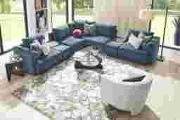 The story of your space is waiting to unfold, its memories, laughs, movie nights and great times, all with the Drew & Jonathan ModularFour living room as the setting you configure to bring it to life. This customizable contemporary seating solution features individual pieces that can be reconfigured endlessly to the shape you need. All-sides upholstery in navy blue chenille offers modern style and comfort at every angle while large, rounded wedge arms invite long sessions of indulgent relaxation. Effortlessly tailor your seating arrangement for everything from game days to sleepovers to everyday relaxation with easy-to-use connectors for rock solid stability. The included consoles feature integrated USB-A and USB-C charging for ultimate convenience. Includes left arm chair, two consoles, two armless chairs, wedge and right arm chair. Visit a showroom to learn more about individual components and to work with a sales specialist to customize your own configuration today. Upholstery: 100% Polyester.