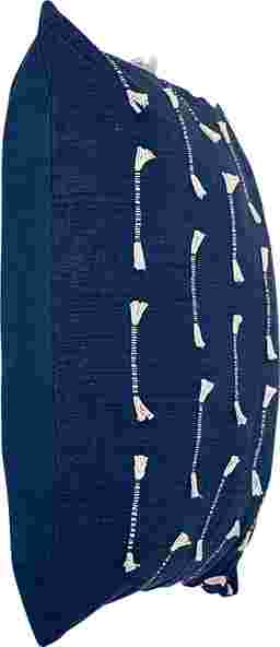 The dark blue color and textured pattern make this an excellent choice for active households. Darker hues are naturally more forgiving when it comes to hiding minor dust or pet hair, and the "boho" texture helps mask the wear and tear that can occur in busy living spaces. For homes with pets, the tight weave of the material helps prevent snagging compared to more delicate fabrics like silk or loose knits.
