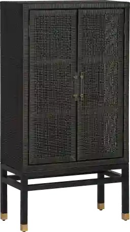The Neath black accent cabinet is the epitome of relaxed California-cool energy. This piece offers great storage and style with its high-quality wrapped rattan design, brass-capped legs and lucite hardware. Its natural, earthy look complements a wide variety of decor styles, the rattan also adds a touch of warmth and texture to any space. Customer assembly is required.