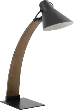 This lamp is expertly designed for task lighting. The 22.25-inch height and arched wood neck allow the light to be positioned precisely over a workspace, while the cone-shaped black shade directs the beam downward to minimize glare. This makes it an ideal choice for focused activities such as reading, drafting, or detailed office work where concentrated light is essential.