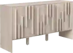 This sideboard is constructed with warp-resistant MDF, a material specifically chosen for its exceptional stability. Unlike solid wood, which can expand or contract when exposed to changes in temperature and humidity, warp-resistant MDF remains consistent. This ensures that the intricate vertical wood detailing and the alignment of the hardware-free doors stay perfect over time, even in varying climates.