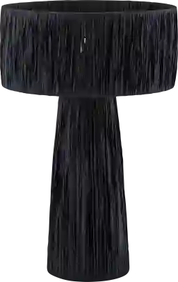 The drum shape of this shade provides a focused distribution of light both upwards and downwards, which is excellent for creating layered, ambient lighting. The black raffia material acts as a beautiful diffuser; rather than letting light glow through the sides like a white linen shade, it directs the light to create a more intimate, "mood-lit" atmosphere that emphasizes the lamp's silhouette and texture.
