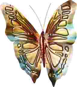Infuse your home with cozy charm, where weathered textures, rustic finishes, and warm earthy tones create a wholesome atmosphere. The Nerian Butterfly Sculpture is crafted from stainless steel, providing a combination of artistic flair and long-lasting quality that enlivens any home interior. This wall decor features a shiny finish with teal, red, and gold colors that add vibrancy to any space. The statue boasts a butterfly form and a lustrous sheen, offering a blend of artistry and elegance.
