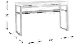 Sleek elements including a Chinese marble top and chic chrome base make the Nerissa sofa table a stunning choice. The addition of a glass display shelf enhances the elegant contemporary aesthetic. Simply add your own decorative items and family pictures to complete the look in style.