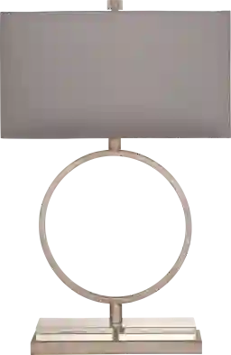 The Nesmith table lamp works great in any modern setting. It is the perfect size for a side table or console table. It features a silver leaf metal finish and grey linen shade that works well with today's popular design colors. Some customer assembly required.