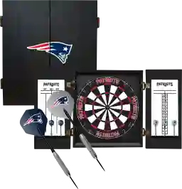 The Fan's Choice New England Patriots dartboard set features your favorite team logo and includes a premium 18-inch tournament sized, self-healing bristle dartboard. Self-healing bristle dartboards are some of the longest lasting boards on the market, since the holes close up after each dart is removed. This hanging dartboard cabinet will look great in your fan cave or any room that your family and friends gather. It's easy to assemble and the cabinet comes preassembled and ready to hang on the wall. Secure the dartboard and you are ready to have hours of enjoyment.