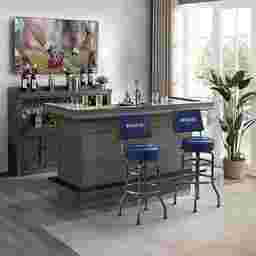 Cheer on your team in style with this New England Patriots commercial-grade chrome barstool with backrest. Crafted with durable materials and finished in your team's signature colors, this barstool delivers both comfort and pride. Customer assembly is required.