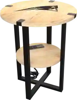The New England Patriots laser etched round side table features a modern design that seamlessly blends with various decorative styles. It offers a convenient functionality for charging up to four devices at one time. The 2-Tier shelf also provides ample space to store your TV remote and other small items. Whether you are a Patriots fan or simply appreciate well-crafted furniture, this side table is a versatile addition to any room. Customer assembly is required.