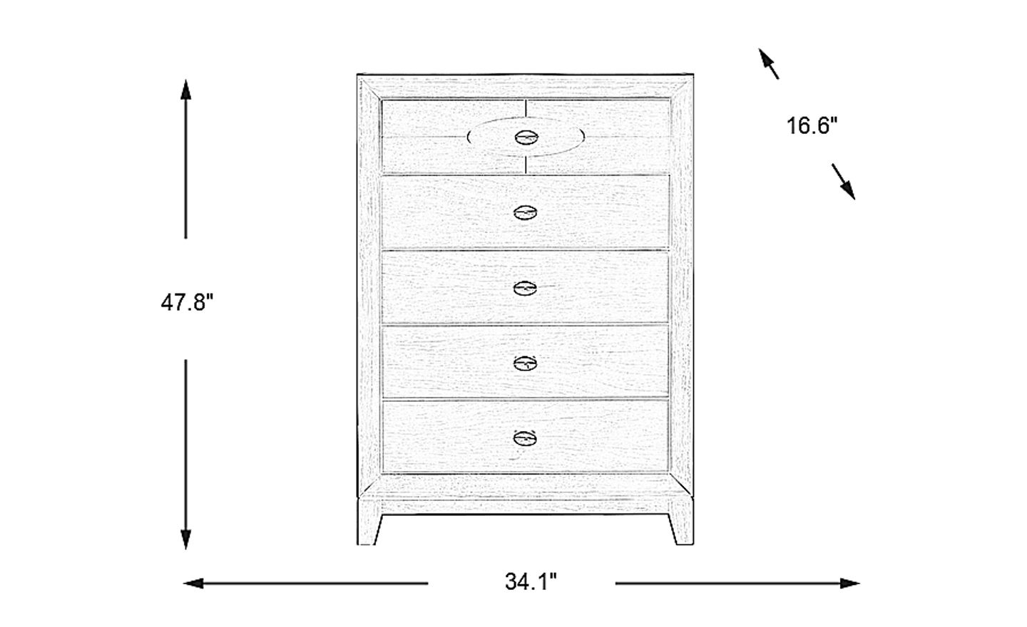 Keep clothes stored in style with the New Haven chest. This transitional piece, made with wood solids and okume veneers, features five spacious drawers ideal for storing folded clothing and accessories. Each drawer is made with sturdy French and English dovetail joints. Chrome finished hardware pops against the chest's rich merlot finish. Tapered legs provides support.