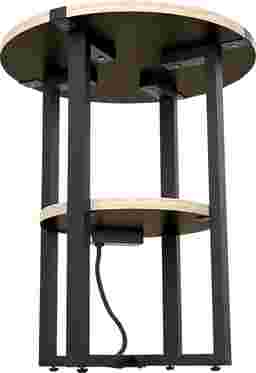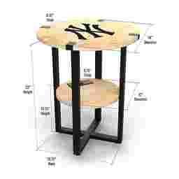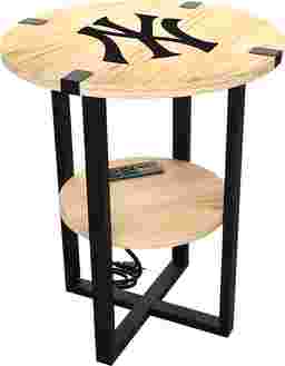 The New York Yankees laser etched round side table features a modern design that seamlessly blends with various decorative styles. It offers a convenient functionality for charging up to four devices at one time. The 2-Tier shelf also provides ample space to store your TV remote and other small items. Whether you are a Yankees fan or simply appreciate well-crafted furniture, this side table is a versatile addition to any room. Customer assembly is required.
