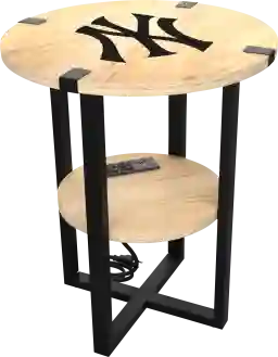 The New York Yankees laser etched round side table features a modern design that seamlessly blends with various decorative styles. It offers a convenient functionality for charging up to four devices at one time. The 2-Tier shelf also provides ample space to store your TV remote and other small items. Whether you are a Yankees fan or simply appreciate well-crafted furniture, this side table is a versatile addition to any room. Customer assembly is required.