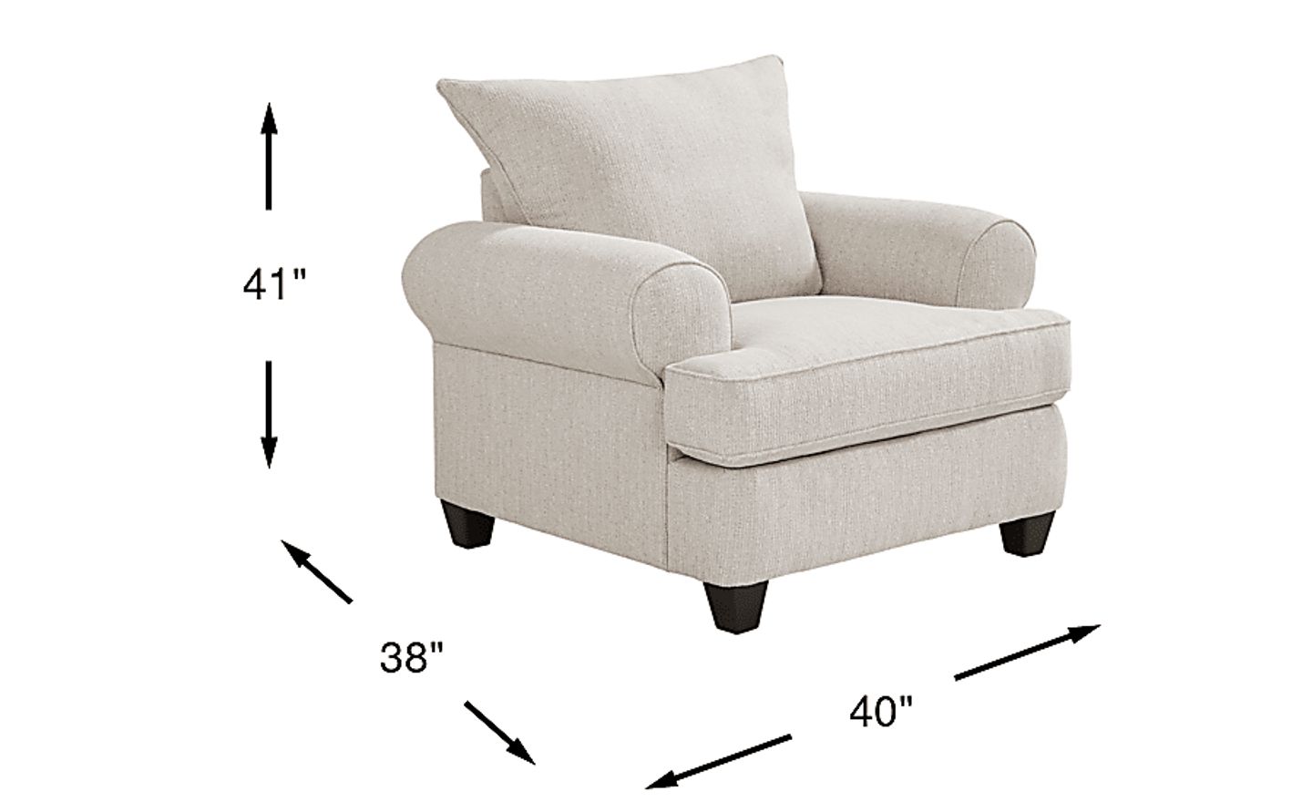 Subtle angles deliver stunning features with the contemporary style of the Newcastle chair. Upholstered with bright ivory chenille, this piece's gorgeous profile is framed by a pair of eye-catching rolled arms. Complimented by the feel of the chair's woven fabric, the plush, oversized back pillow supplies irresistible support and comfort while welted details on the reversible seat cushion fuse the look with dynamic flair. The brown block legs deliver a warm final note for an incredible overall look. 100% polyester