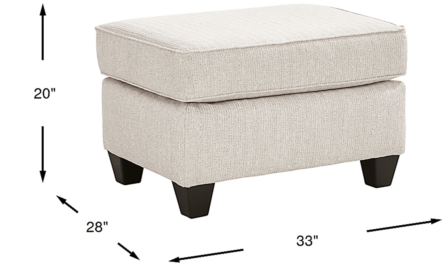 Subtle angles deliver stunning features with the contemporary style of the Newcastle ottoman. Upholstered with bright ivory chenille, ottoman offers incredible support as a footrest. The brown block legs deliver a warm final note for incredible overall look. 100% polyester