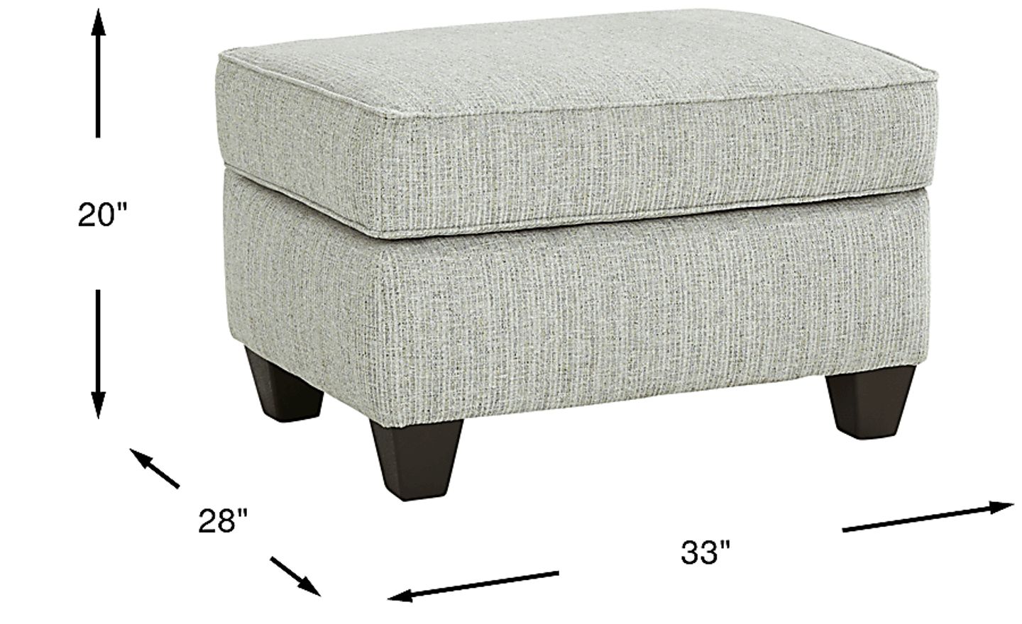 Subtle angles deliver stunning features with the contemporary style of the Newcastle ottoman. Upholstered with light teal chenille, ottoman offers incredible support as a footrest. The brown block legs deliver a warm final note for incredible overall look. 100% polyester