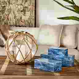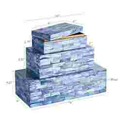 Straighten up in style with this Newdale set of three blue boxes. Perfect for dressers, desks, tables, and more, this set keeps small items organized to help keep your space looking neat and tidy.