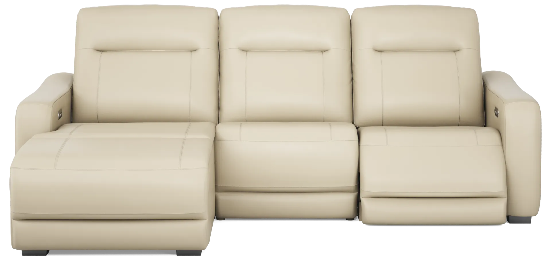 The sleek design, understated sophistication and casual profile of the Drew & Jonathan Newport sectional presents a warm, inviting feeling the whole family can enjoy. Modern in style, this sectional is upholstered in a soft, supple top grain leather where the body touches with stylish double top-stitched seams for a luxurious look. Curved, padded arms, wide seats and an elongated footrest in the chaise provide ample space for exceptional comfort, while dual power reclining functions allow adjustments in the head and footrest via a patented zero gravity mechanism for the ultimate lounging experience. Upholstery: Top grain leather where the body touches. Polyurethane sides and back.
