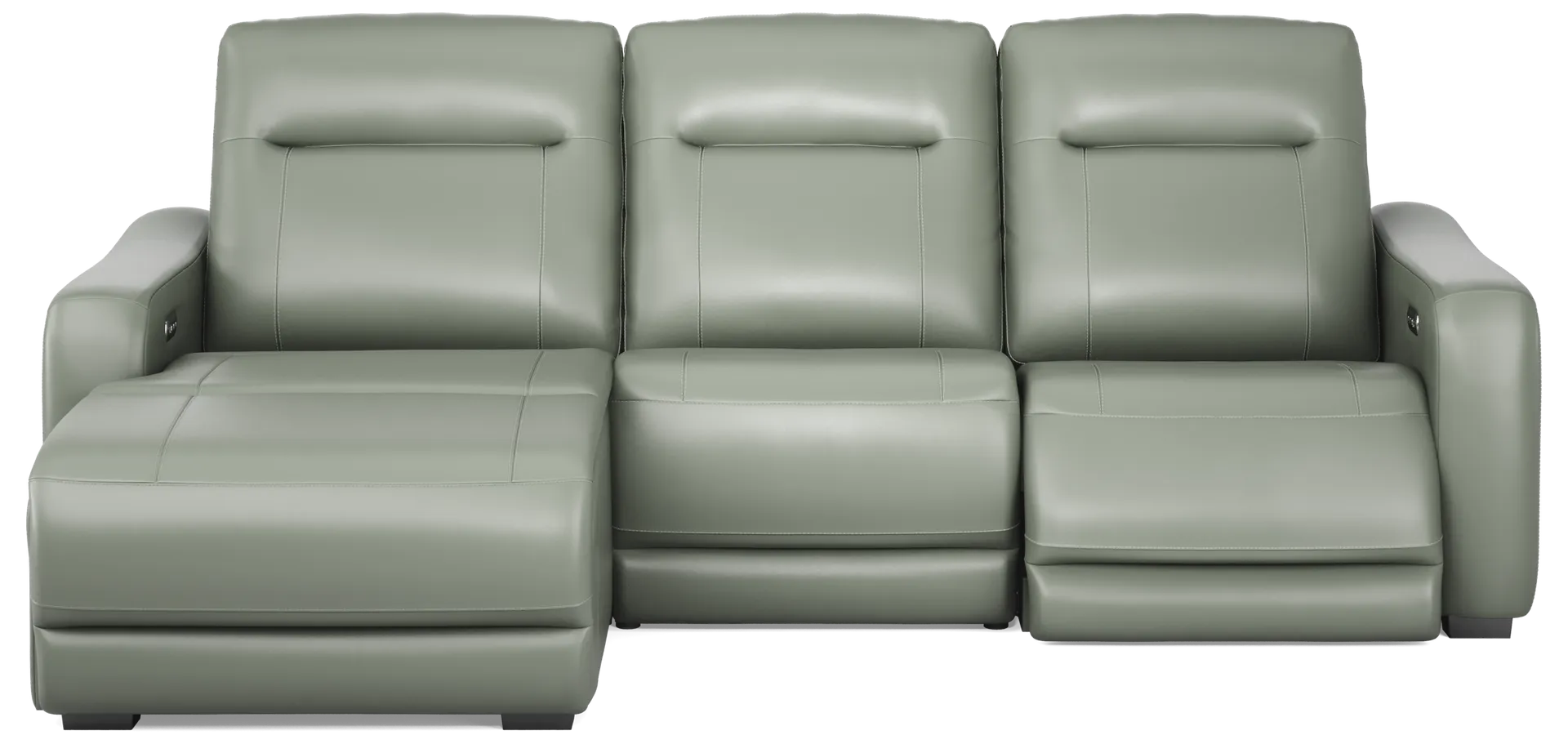 The sleek design, understated sophistication and casual profile of the Drew & Jonathan Newport sectional presents a warm, inviting feeling the whole family can enjoy. Modern in style, this sectional is upholstered in a soft, supple top grain leather where the body touches with stylish double top-stitched seams for a luxurious look. Curved, padded arms, wide seats and an elongated footrest in the chaise provide ample space for exceptional comfort, while dual power reclining functions allow adjustments in the head and footrest via a patented zero gravity mechanism for the ultimate lounging experience. Upholstery: Top grain leather where the body touches. Polyurethane sides and back.