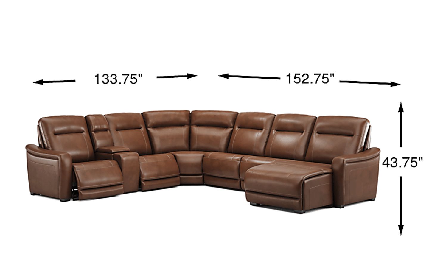 The sleek design, understated sophistication and casual profile of the Drew & Jonathan Newport sectional presents a warm, inviting feeling the whole family can enjoy. Modern in style, this sectional is upholstered in a soft, supple top grain leather where the body touches with stylish double top-stitched seams for a luxurious look. Curved, padded arms, wide seats and an elongated footrest in the chaise provide ample space for exceptional comfort. The console adds more space as its hidden cupholders and storage compartment hold your relaxation essentials perfectly. Dual power reclining functions provide the finishing touch, allowing adjustments in the head and footrest with a patented zero gravity mechanism for the ultimate lounging experience. Upholstery: Top grain leather where the body touches. Polyurethane sides and back.